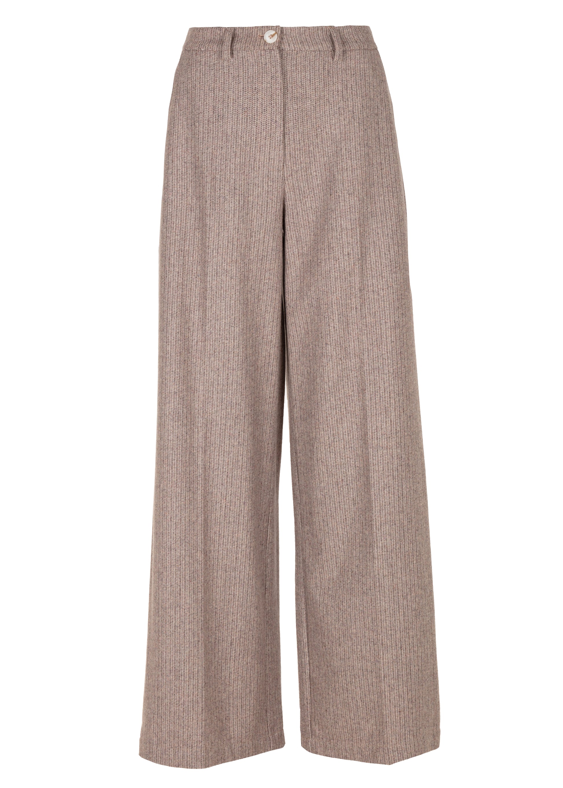 Deze broek is gemaakt van een hoogwaardige wolmix die zacht aanvoelt en zorgt voor een warme, comfortabele pasvorm. De rechte, wijde pijpen creëren een elegant silhouet, terwijl de klassieke tailleband met knoop- en ritssluiting zorgt voor een nette afwerking. Perfect te combineren met een blouse of bijpassend jasje voor een stijlvolle, gecoördineerde look.