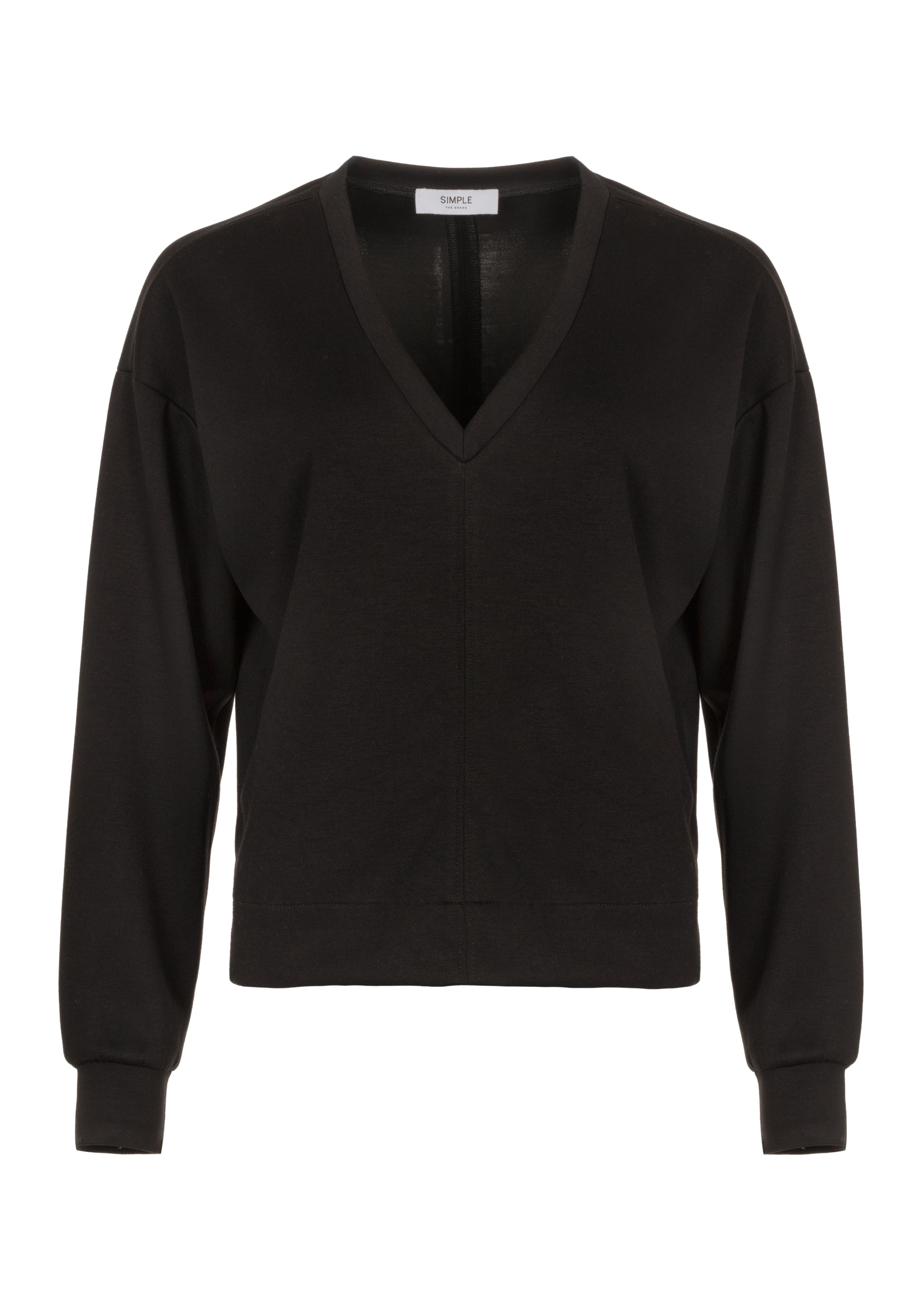 This modern top combines a minimalist design with ultimate comfort. Crafted from a high-quality material blend, the fabric feels exceptionally soft and offers a gentle stretch for the perfect fit. The design features a deep V-neckline, long sleeves, and subtly dropped shoulders for a relaxed yet stylish look. Ideal for wearing casually or dressing up with a skirt or tailored trousers.
