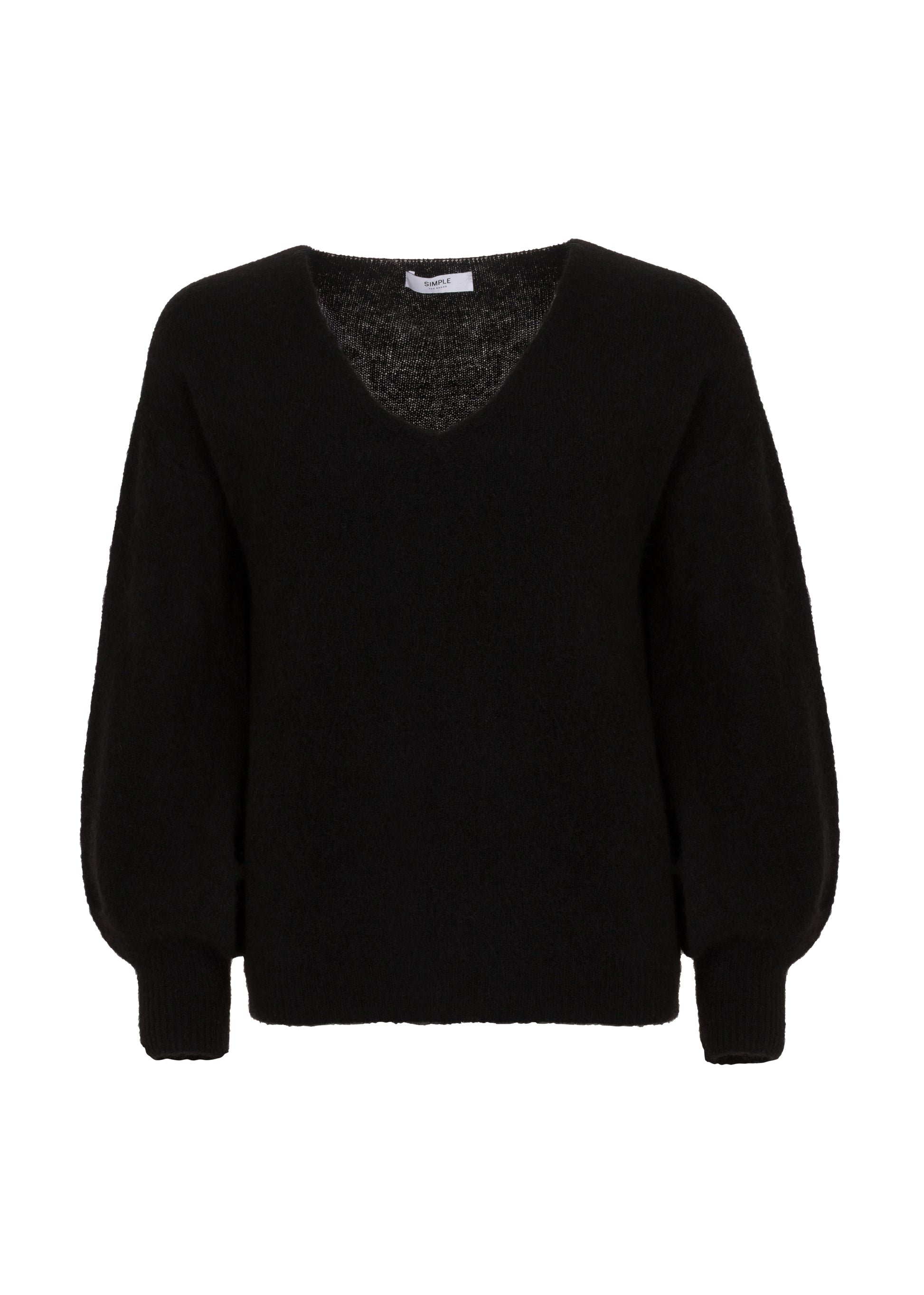 - Knitted sweater with V-neckline