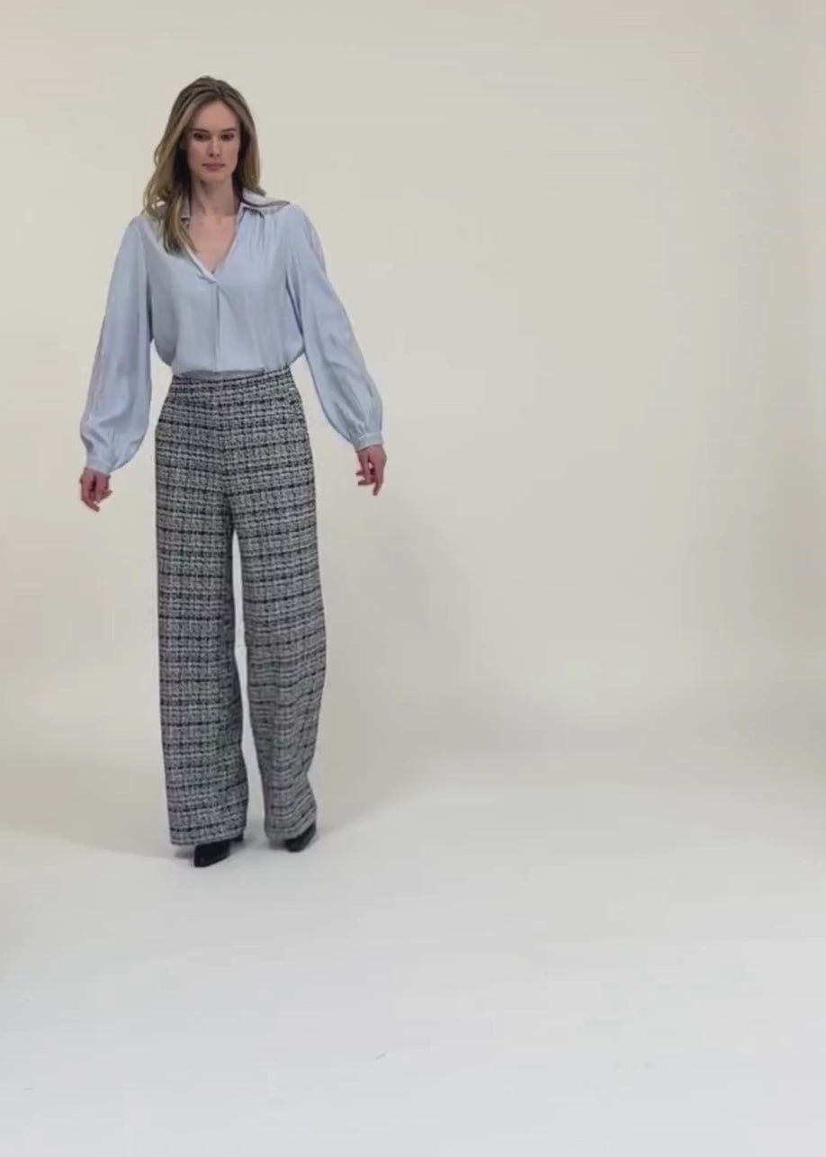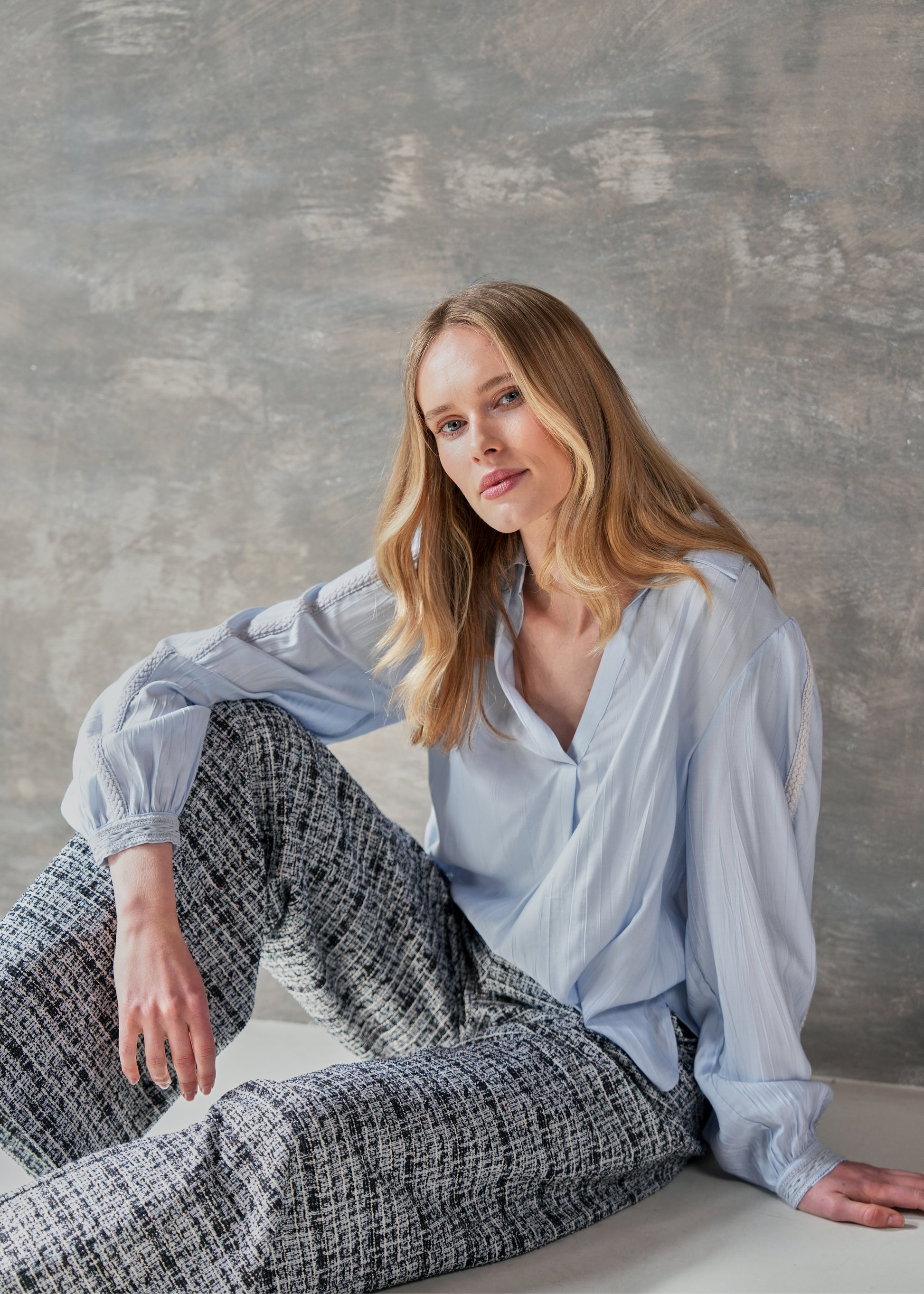 Finished with a classic placket collar and long sleeves with delicate details, it adds a polished and feminine touch to any outfit.