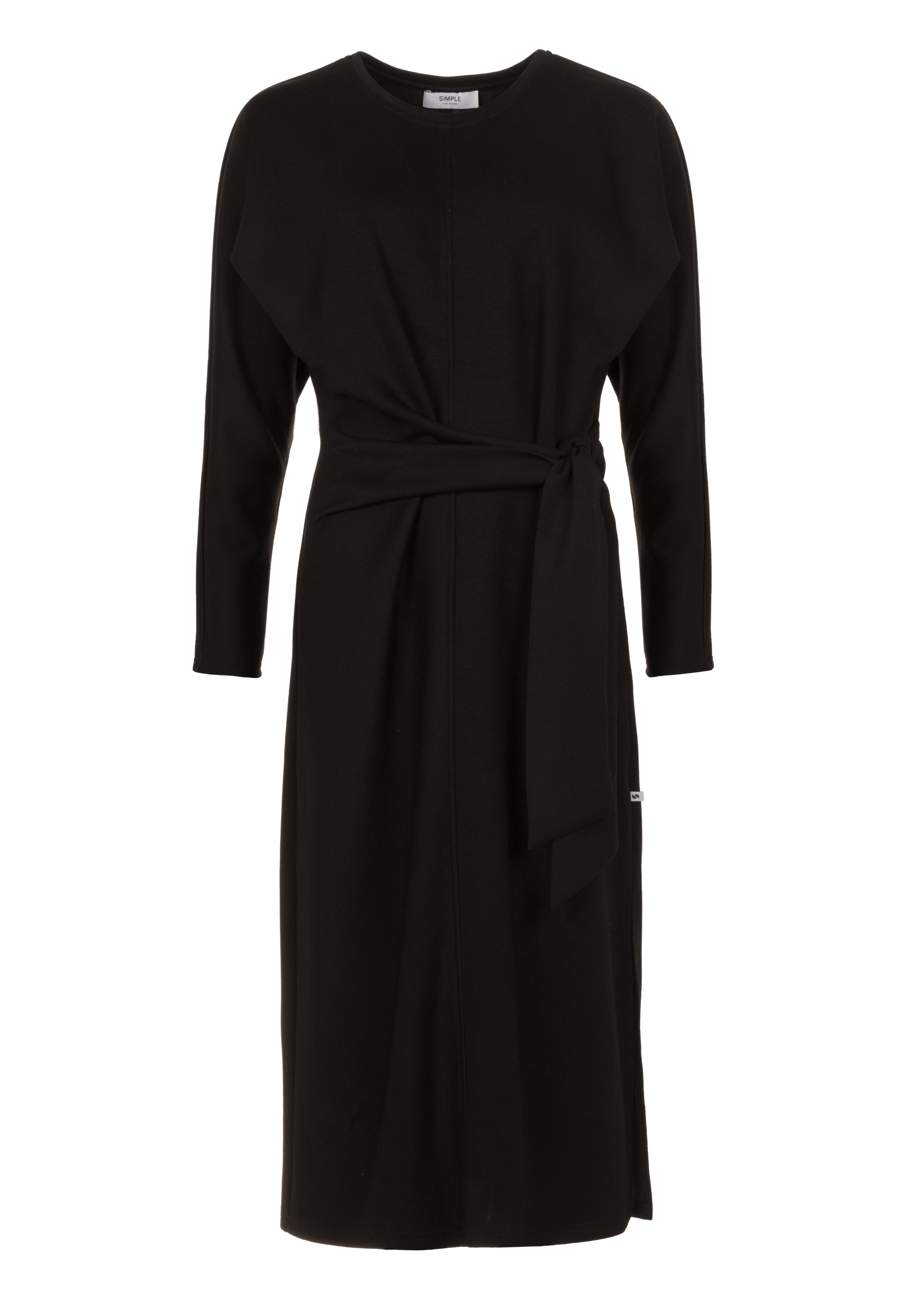This stylish dress combines simplicity with refined details. Made from a soft and supple blend of modal and polyester with a touch of stretch, the fabric feels comfortable and drapes beautifully over the body. The round neckline and long sleeves give the dress a timeless look, while the tie belt at the waist creates an elegant, feminine silhouette. Perfect for both casual and more formal occasions.
