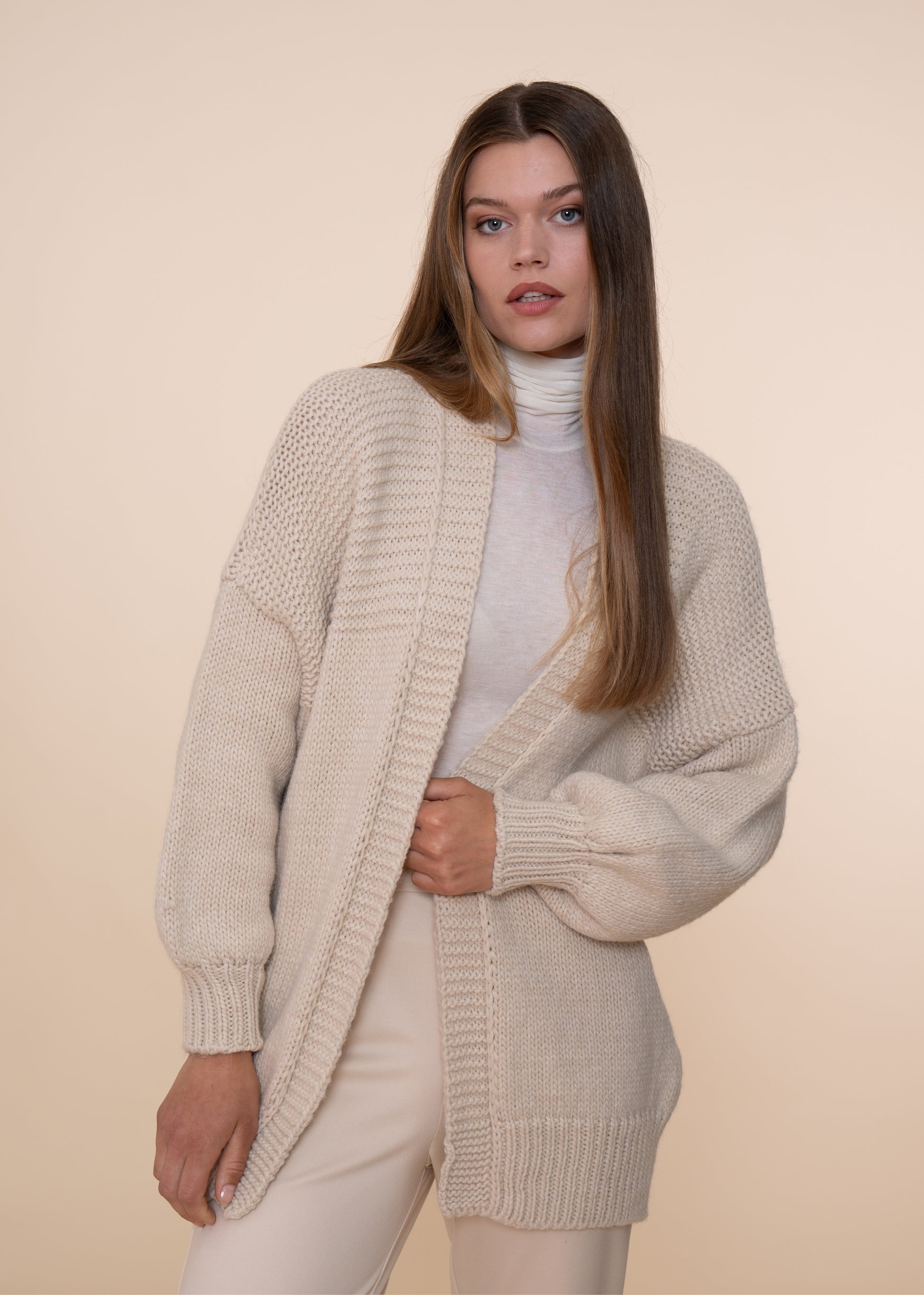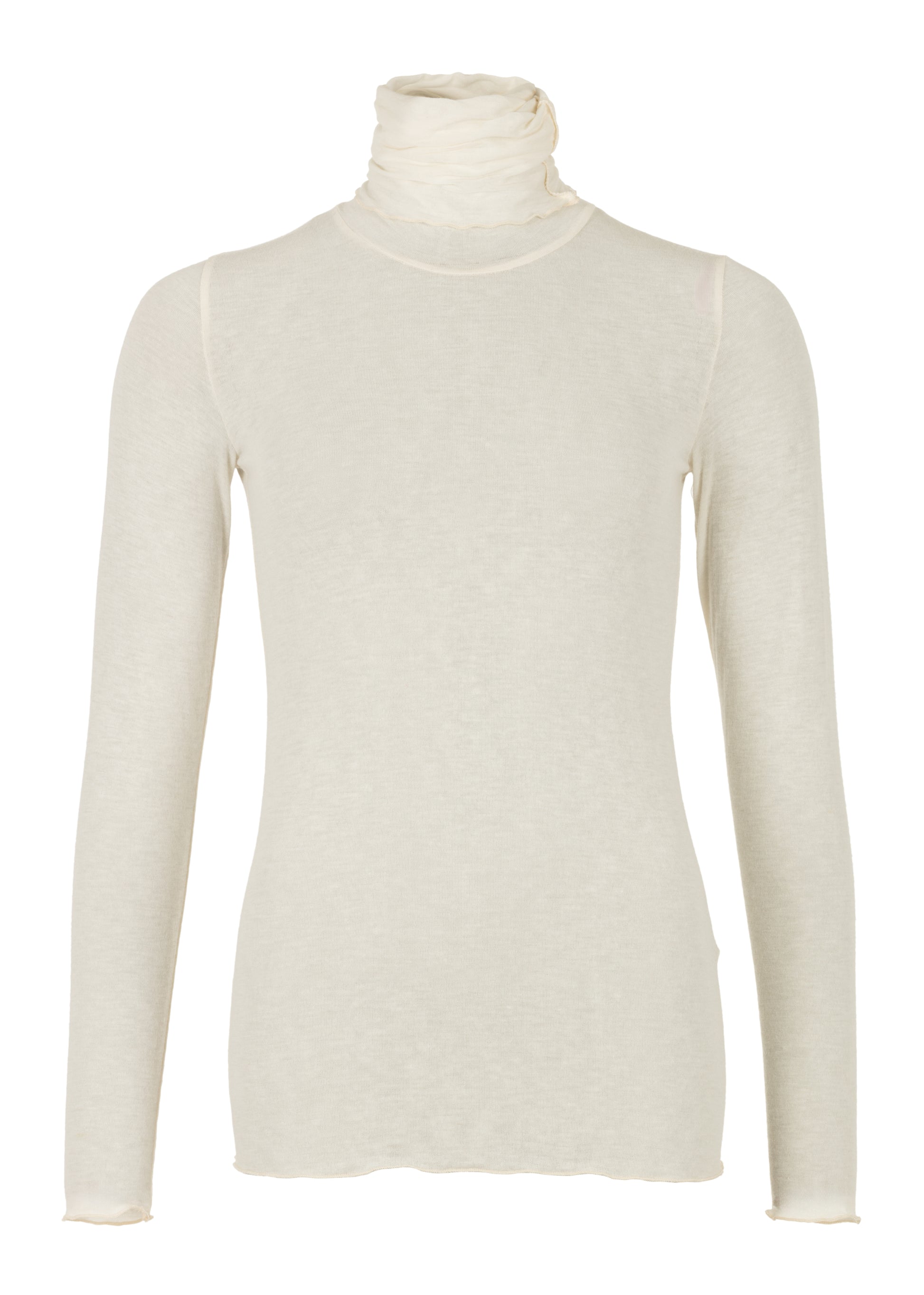 Beige fitted top with long sleeves and a turtleneck is the perfect must-have for this winter.