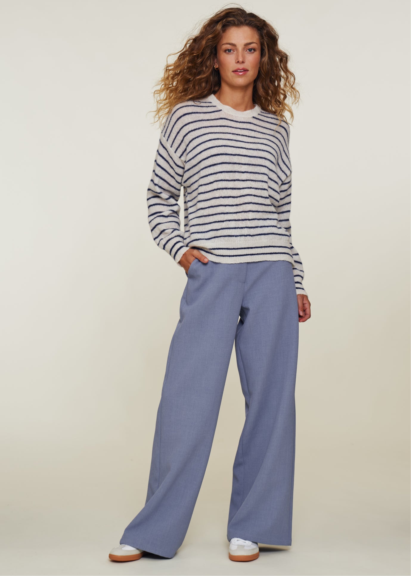 This soft and warm sweater is made from a fluffy alpaca blend and features a classic stripe pattern. The round neckline and comfortable fit make it a versatile piece for any wardrobe.