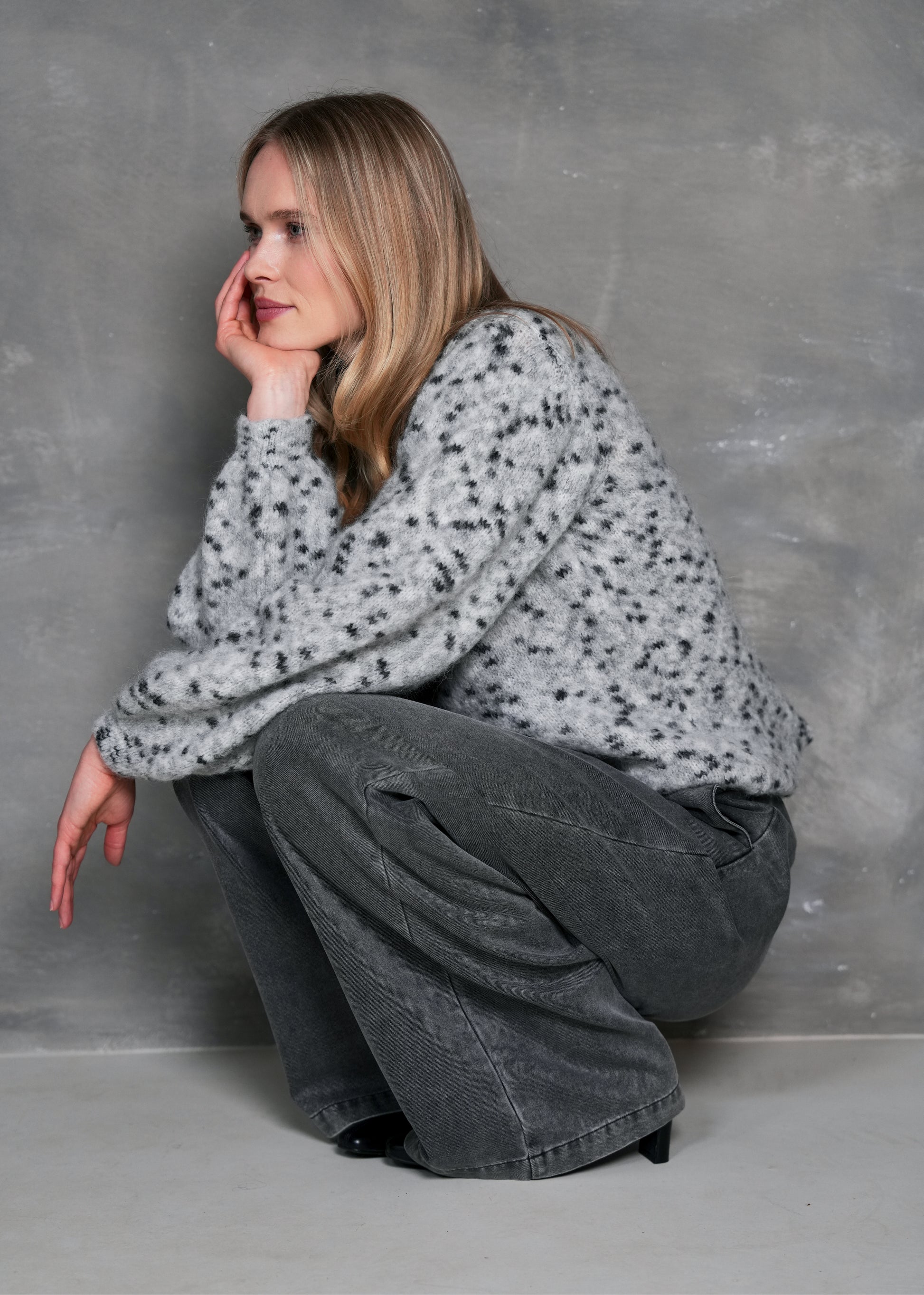 This knitted sweater combines a playful melange pattern with ultimate wearing comfort. Made from a soft and warm blend of materials, it feels wonderful against the skin and offers a comfortable fit. The round neckline and subtly gathered sleeves give the design a timeless and versatile look, perfect for both casual and dressed-up occasions. A stylish and cozy piece for cooler days.